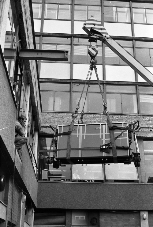 There was no way to get the 516 up the stairs to it’s new home on the first floor so it had to be craned in through the window.